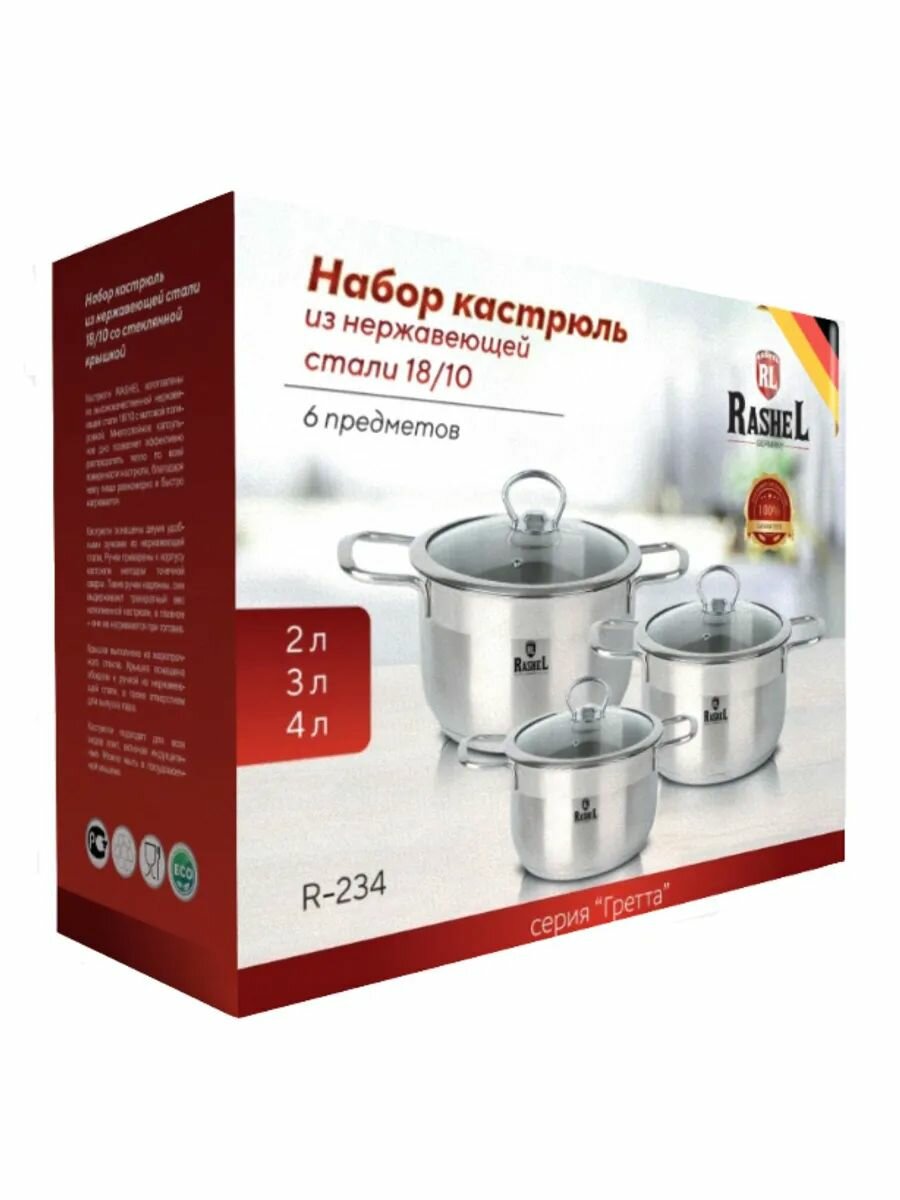 Набор кастрюль из нерж. стали (2л, 3л, 4л) 6 пр. R-234: сравнение цен, характеристики, фото, актуальное наличие и цены.