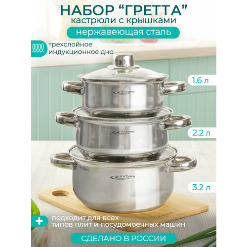 Купить Набор кастрюль с крышками 1.6+2.2+3.2 л, коллекция Гретта с доставкой по всей России. Набор кастрюль с крышками 1.6+2.2+3.2 л, коллекция Гретта: сравнение цен, характеристики, фото, актуальное наличие и цены.