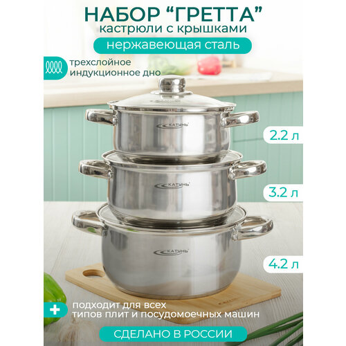 Купить Набор кастрюль с крышками 2.2+3.2+4.2 л, коллекция Гретта с доставкой по всей России. Набор кастрюль с крышками 2.2+3.2+4.2 л, коллекция Гретта: сравнение цен, характеристики, фото, актуальное наличие и цены.