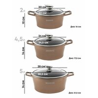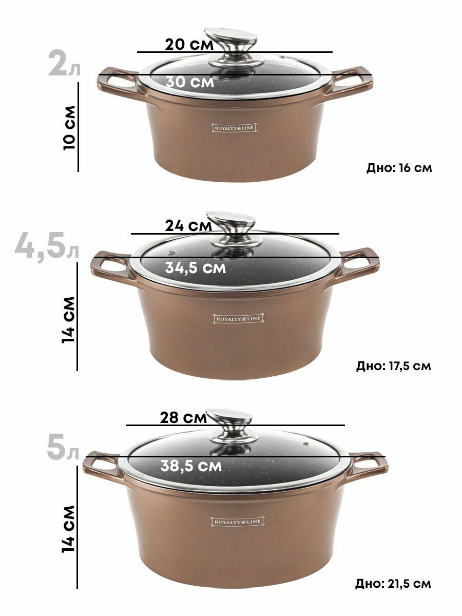 Эстетичный и современный дизайн посуды дополнит интерьер вашей кухни, а прочные материалы обеспечат долговечность и надежность использования. Набор кастрюль подходит для всех типов плит, включая газовые, электрические и стеклокерамические, что делает его универсальным помощником на кухне.