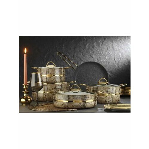 - Набор кастрюль посуда для кухни Selection от премиального турецкого бренда Brioni превратит процесс приготовления в праздник! Наружное огнеупорное антипригарное покрытие с текстурой натурального камня, нанесенное по специальной технологии, предлагает вам элегантность, изящество и великолепие. Внутреннее гранитное покрытие Greblon C3 , обеспечивающее ультра-антипригарное покрытие с превосходными характеристиками , позволяет готовить блюда без прилипания и масла. Набор кастрюль легко очищается после использования. Без пфоа И никеля. Запатентованная конструкция , технология ленточной рукоятки, примененная впервые в мире по специальной методике, придает дополнительную уверенность всем пользователям. Стальные ручки , приклепанные к корпусу и окружающие всю кастрюлю, обеспечивают длительное использование. Кастрюли набор: сковорода 28 см; Кастрюля с крышкой 28 см 6,5 л; Кастрюля с крышкой 24 см 4 л; Кастрюля с крышкой 20 см 2 л; Сотейник с крышкой 28 см 3 л Внимание! Для более долгой службы антипригарного покрытия не рекомендуется мыть в посудомоечной машине, а так же металлические кухонные принадлежности!