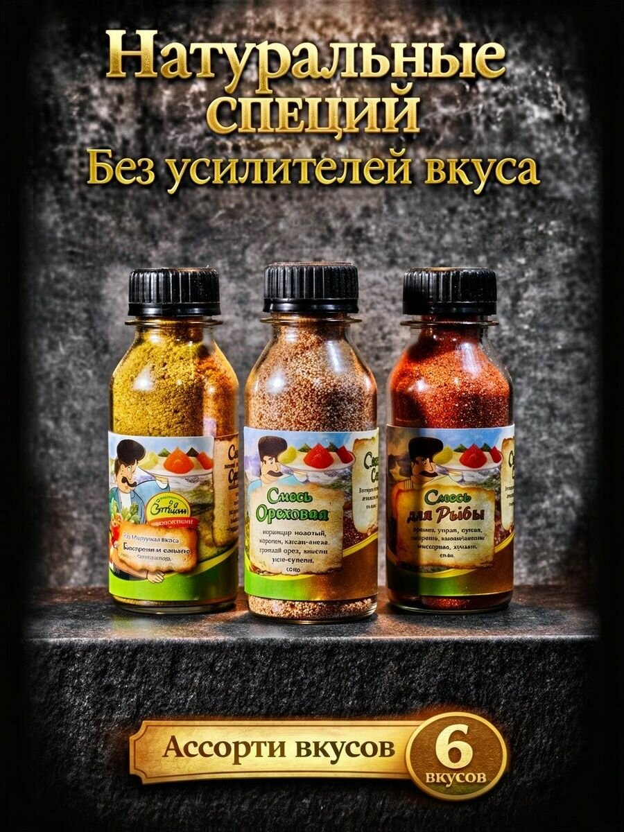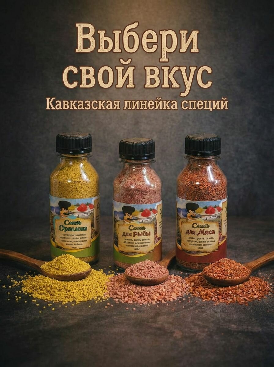 - Универсальность: каждая приправа раскрывает богатство кавказской кухни, подходя к мясу, овощам и гарнирам.