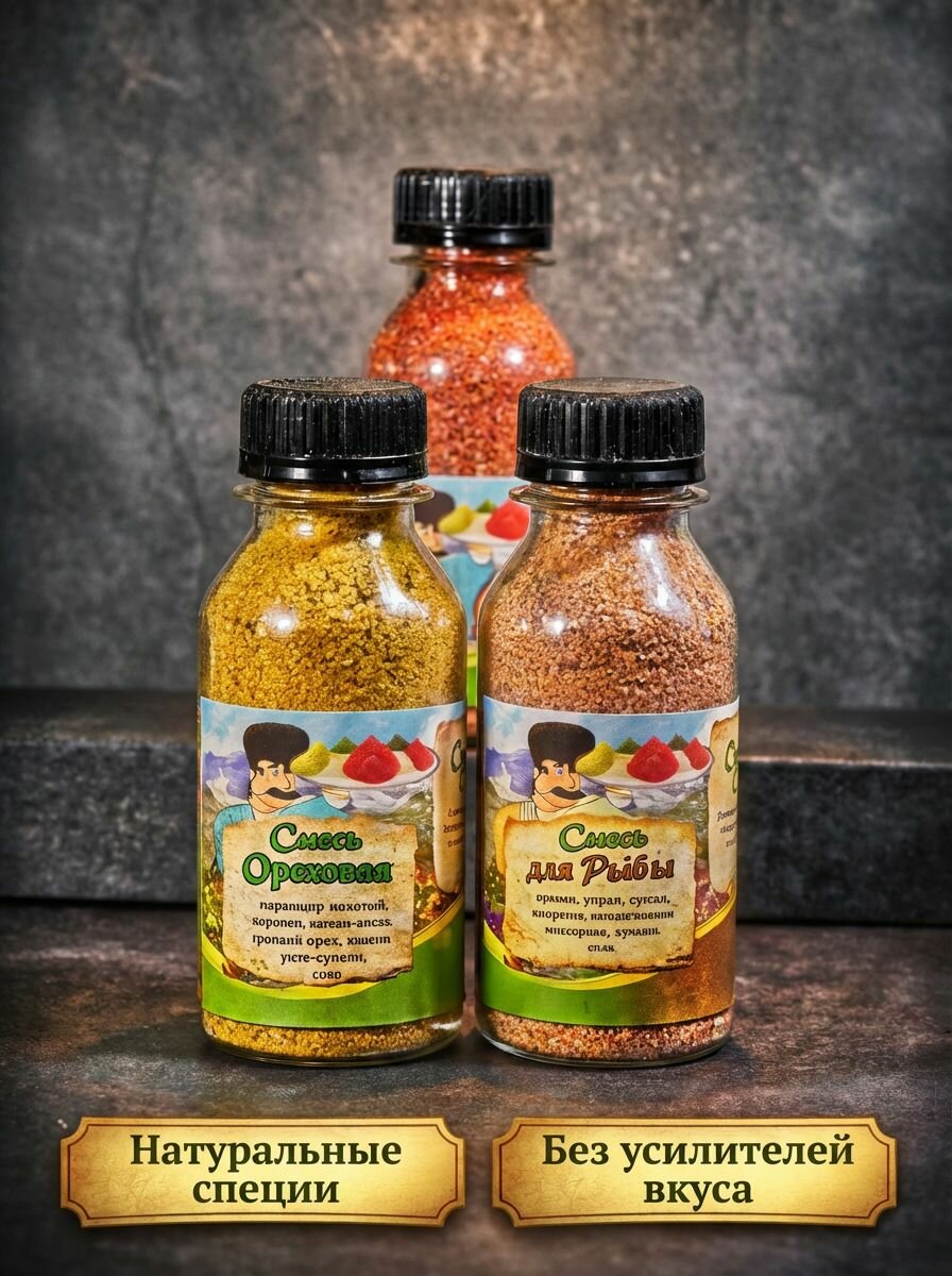- Натуральный состав: пряности приготовлены без консервантов, только из свежих трав и орехов.