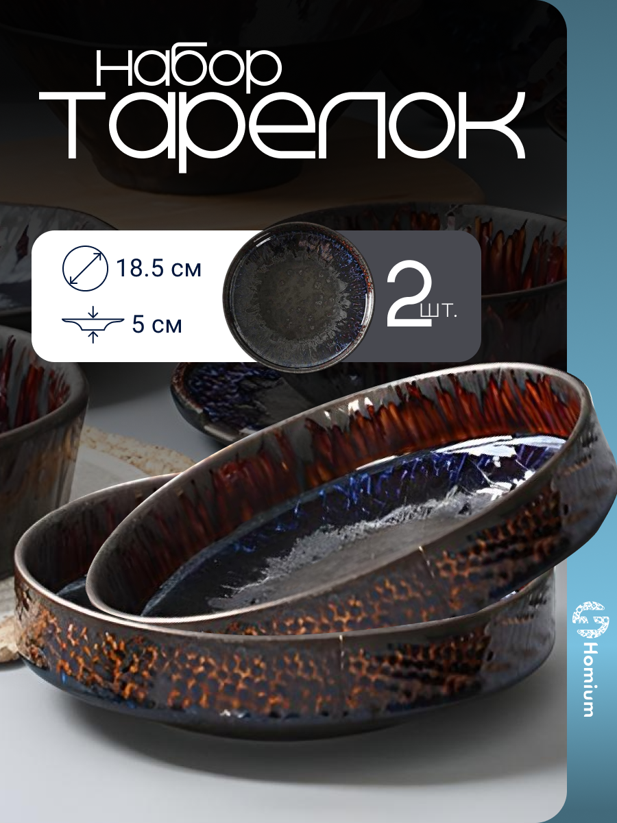 Набор керамических тарелок Homium, Bronze, 2 шт, D18,5см, цвет сине-коричневый: сравнение цен, характеристики, фото, актуальное наличие и цены.