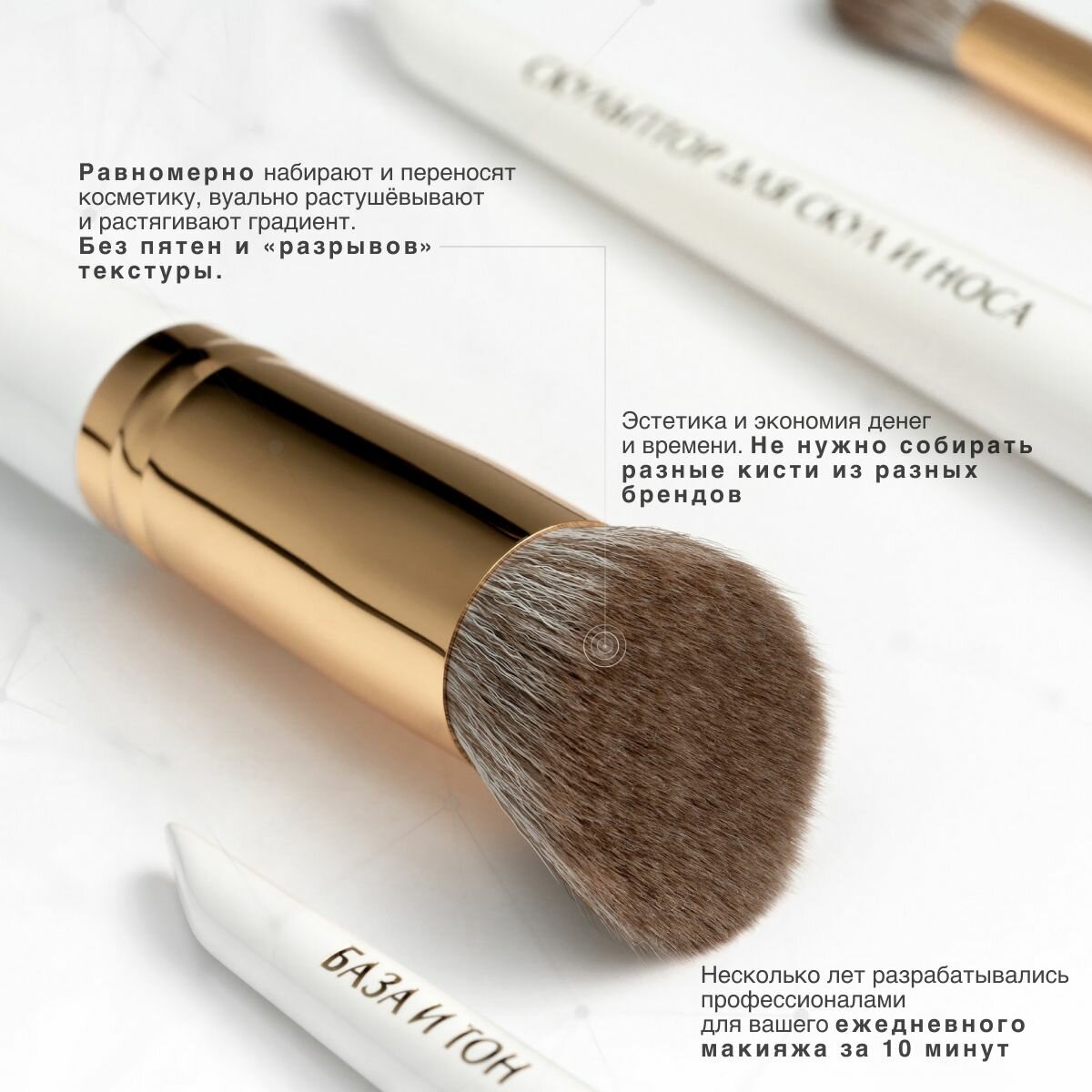 Гарантия качества: если найдёте ворс нежнее, мы вернём вам деньги. Таким образом этот набор составлен так, чтобы вы могли создавать стойкий ежедневный макияж.