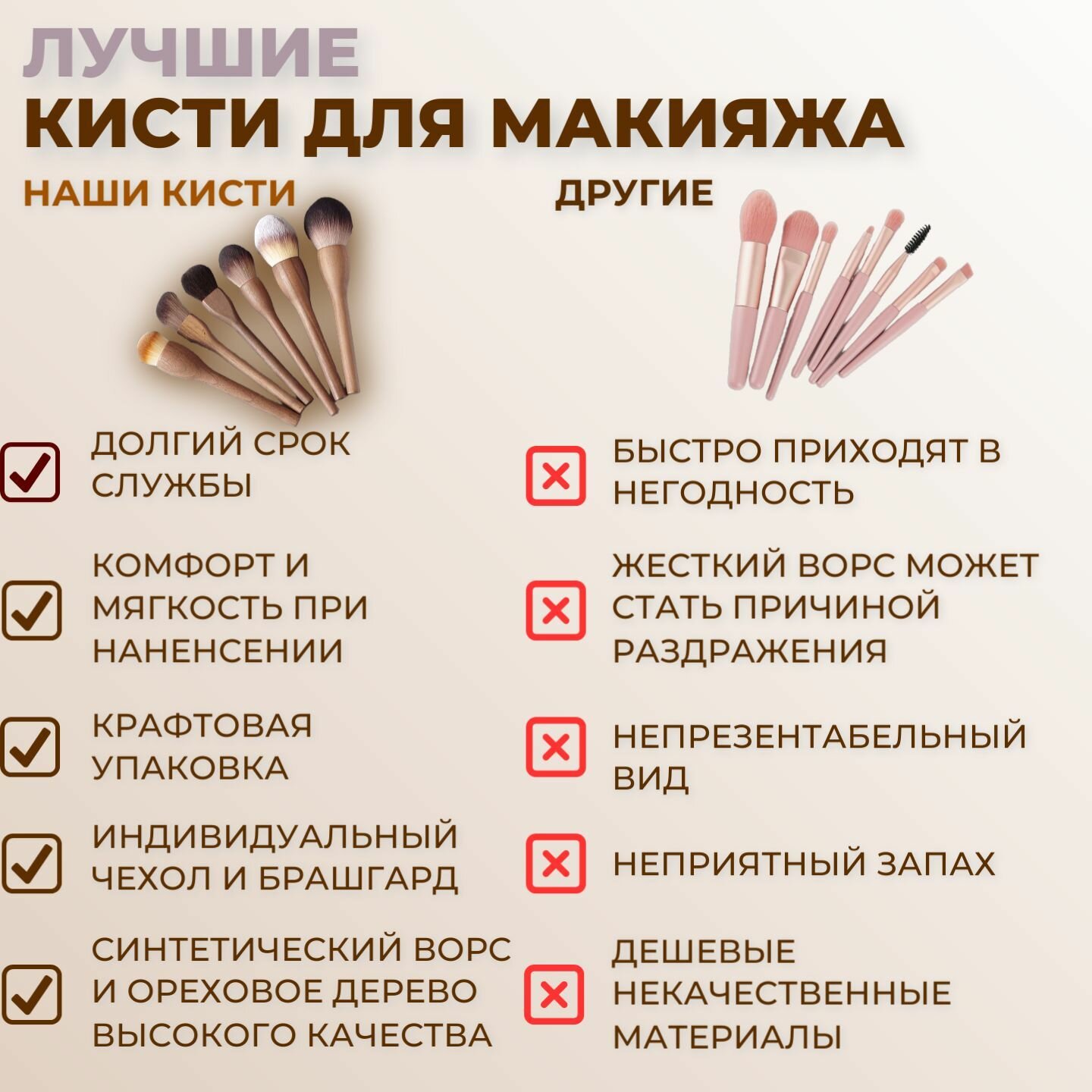 Профессиональный набор кистей для макияжа позволит создать эффектный и запоминающийся MAKEUP. В него входят 6 кисточек разной формы с мягким синтетическим ворсом премиум качества. Кисти косметические выполнены из высококачественного нейлонового волокна с тонкими, и гладкими щетинками, приятны на ощупь, не вызывают раздражения, хорошо растушевывают косметику, позволяют равномерно наносить ее на кожу. Каждая кисть для макияжа упакована в свой персональный чехол, что позволят обеспечить дополнительную защиту для каждой кисти и удлинить срок жизни данного набора. В представленном наборе все кисти для макияжа натуральные и прослужат вам очень долго! Рукоять каждой кисточки выполнена из дерева грецкого ореха . Набор для макияжа женский будет отличным подарком для девушки, мамы, жены или сестры. Кисти для макияжа можно смело подарить на день рождения, юбилей , свадьбу или на любой другой праздник. Он обеспечит максимальное удобство при выполнении макияжа любого уровня сложности. Это уникальный набор кисточек, которому найдется место в каждой женской косметичке. Кисточки для макияжа протестированы и рекомендованы визажистами.