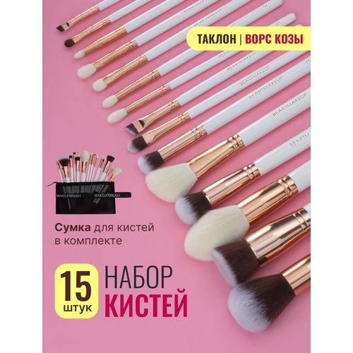 Набор профессиональных кистей для макияжа от бренда Beartmakeup из 15 натуральных кистей для макияжа из ворса козы и таклона высокого качества. Ворс кистей выполнен из высококачественных материалов, ручки кистей выполнены из дерева и имеют нумерацию. К набору прилагается вкладыш с описанием каждой кисти. В набор входят кияти для глаз , лица, бровей, кисти для пудры, румян, контуринга ит д. Набор кистей для макияжа представляет собой идеальное решение для любительниц и профессионалов в макияже. Созданные из высококачественных натуральных материалов, эти кисти обеспечивают идеальное распределение косметики на лице, придавая ему естественный и гармоничный вид. В наборе представлены кисти для различных видов макияжа. Легкость в использовании и долговечность материалов гарантируют удобство и долгосрочное использование, делая этот набор незаменимым помощником в создании идеального образа.