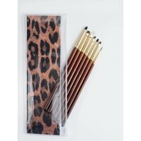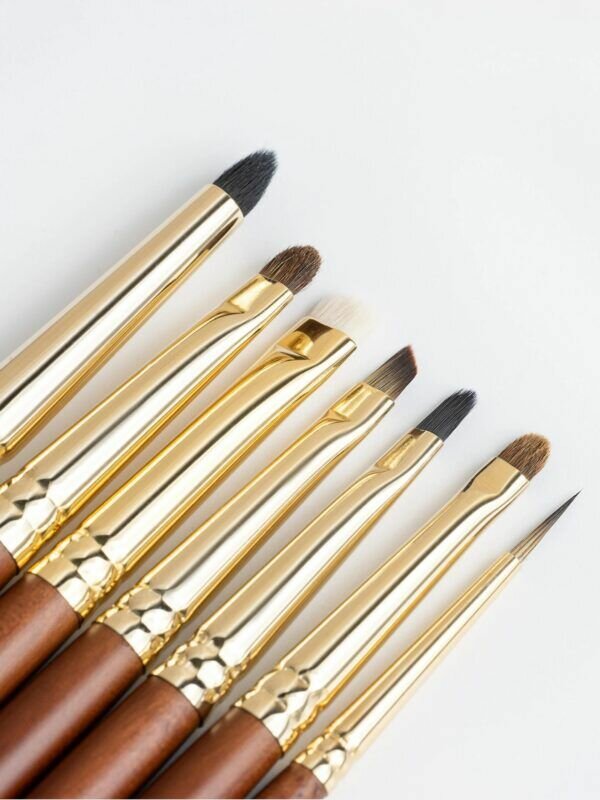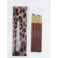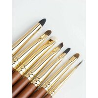 Идеальный набор для идеальной графики! Каждая кисть как произведение искусства, в наборе собраны кисти, с помощью которых вы сможете создать самую сложную графику, прорисовать детально любую вашу задумку в макияже. MD1 Кисть для создания растушеванных стрел, очень плотно набирает тень, не сыпет, можно выводить любую форму, как тоненькую линию, так и более толстую, так же идеально подходит для проработки нижнего века. (имитация козы) MD2 Идеальная кисть для нанесения теней в глубину века. Так же можно уплотнять цвет, делать его более интенсивным не осыпает текстуру, идеальна для нанесения черных оттенков. (пони) MD3 Кисть служит для детальной проработки, можно использовать в технике создания стрел тенями, идеальна для прорисовки внутреннего уголка и нанесения теней на нижнее веко четкой линией. (микс натурального и искусственного ворса козы) MD4 Кисть классической острой формы, идеальна для создания тонких стрел с использованием плотных гелевых текстур, так же эта кисть идеально выводит тонкий внутренний уголочек в форме кошачьего глаза. (искусственный ворс енота) MD5 Кисть для создания идеальных стрелок любой толщины от самой тонкой до супер графичной толстой стрелки. Универсальная кисть подходит для вырисовки любой текстурой, в том числе и гелевой. (нейлон) MD6 Микро кисть для создания глубины цвета, кистью легко добраться до ресничного контура, не задевая основной макияж, детально наносит оттенок, так же можно прорабатывать нижнее веко возле контура ресниц. (микс натурального ворса пони и искусственного колонка) MD7 Кисть идеальна для выведения самых тонких линий, для создания ультра модной графики и для оттягивания кончика стрелки в микро тонкую линию. (искусственный ворс енота) Состав: 7 кистей
