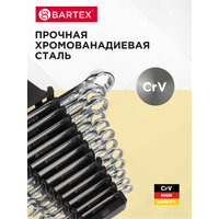 Набор ключей Bartex включает в себя 12 комбинированных ключей с рожковыми и накидными головками. Рожковые головки имеют U-образный профиль, который захватывает крепеж с двух или трех сторон, обеспечивая надежное сцепление. Накидные головки имеют профиль О, который охватывает крепежный элемент со всех сторон, что позволяет работать с тугими соединениями. Особенностью накидных головок является наличие 12 граней кольцевого зева, что увеличивает площадь соприкосновения рабочих поверхностей и снижает риск деформации граней крепежа при монтаже. Это делает набор ключей Bartex универсальным и надежным инструментом для различных видов ремонтных работ.
