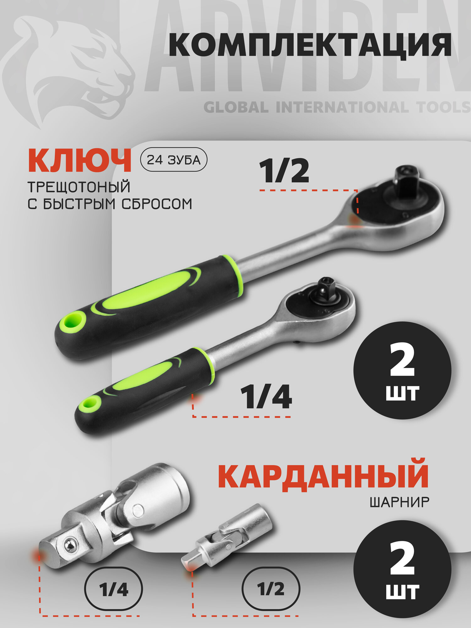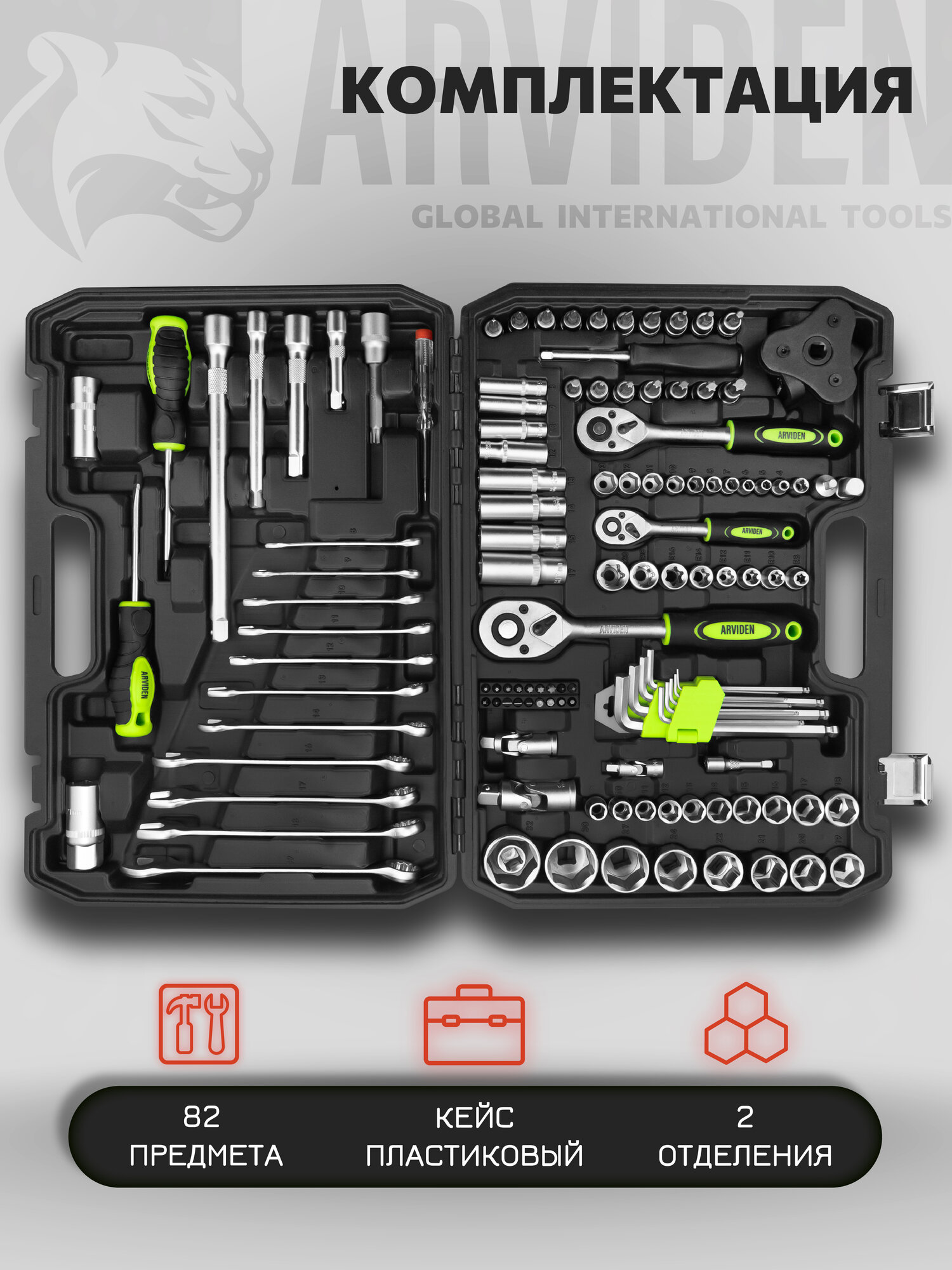 Набор инструментов для автомобиля ARVIDEN 82 предмета, 1/2″, 1/4″, хромованадиевая сталь: сравнение цен, характеристики, фото, актуальное наличие и цены.