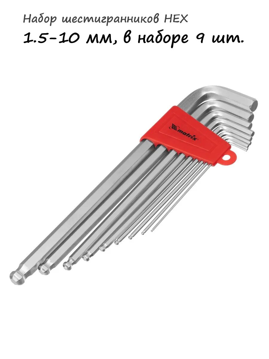 Набор ключей имбусовых Matrix HEX 1, 5–10 мм, CrV, 9 шт, экстра-длин, c шаром, сатин. 16410: сравнение цен, характеристики, фото, актуальное наличие и цены.
