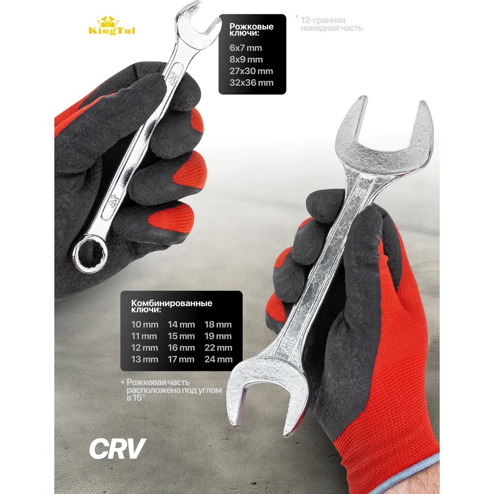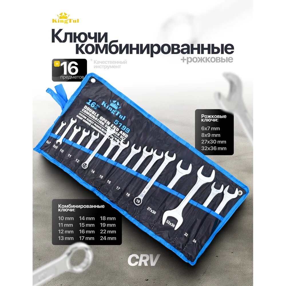 Набор ключей комбинированных и рожковых, 16 предметов KingTul KT-5199(47227): сравнение цен, характеристики, фото, актуальное наличие и цены.