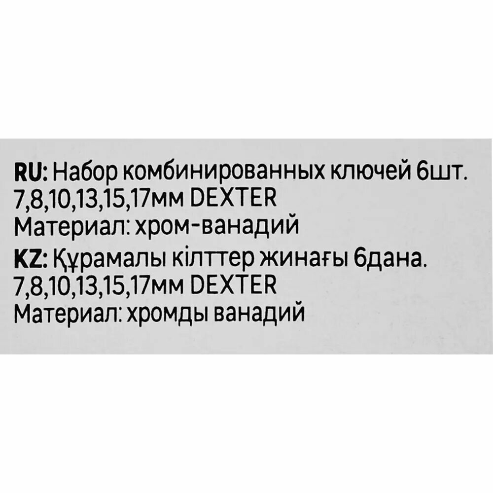 Набор ключей комбинированных Dexter COMB.6PCS SET 7-17 мм, 6 предметов: сравнение цен, характеристики, фото, актуальное наличие и цены.