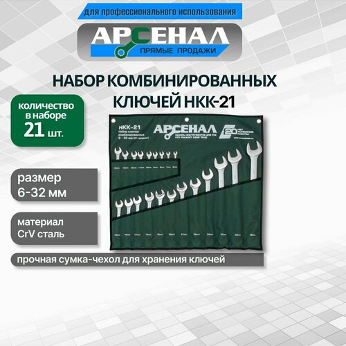 Купить Набор комбинированных ключей «Арсенал» НКК-21, хром-ванадиевая сталь, 6-32 мм, 21 ключ с доставкой по всей России.