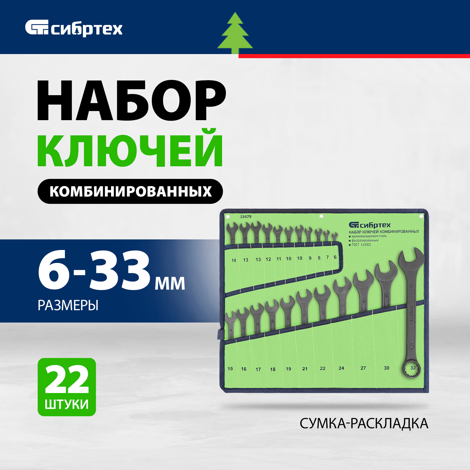 Набор ключей комбинированных Сибртех 6 — 32 мм, 22 шт, CrV, фосфатированные, ГОСТ 16983 15479: сравнение цен, характеристики, фото, актуальное наличие и цены.