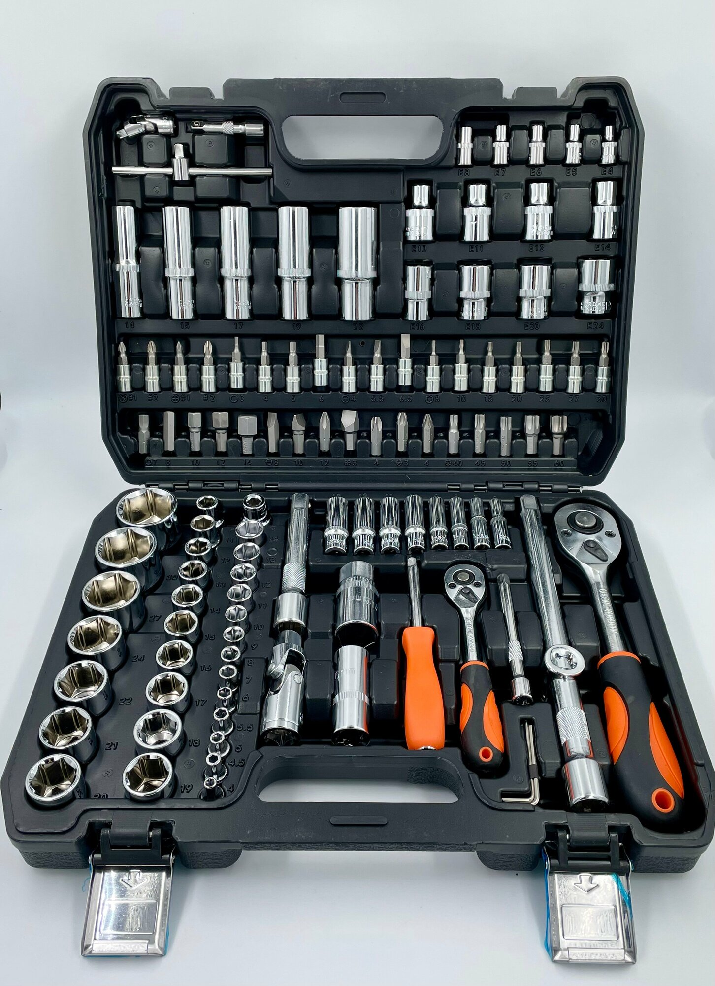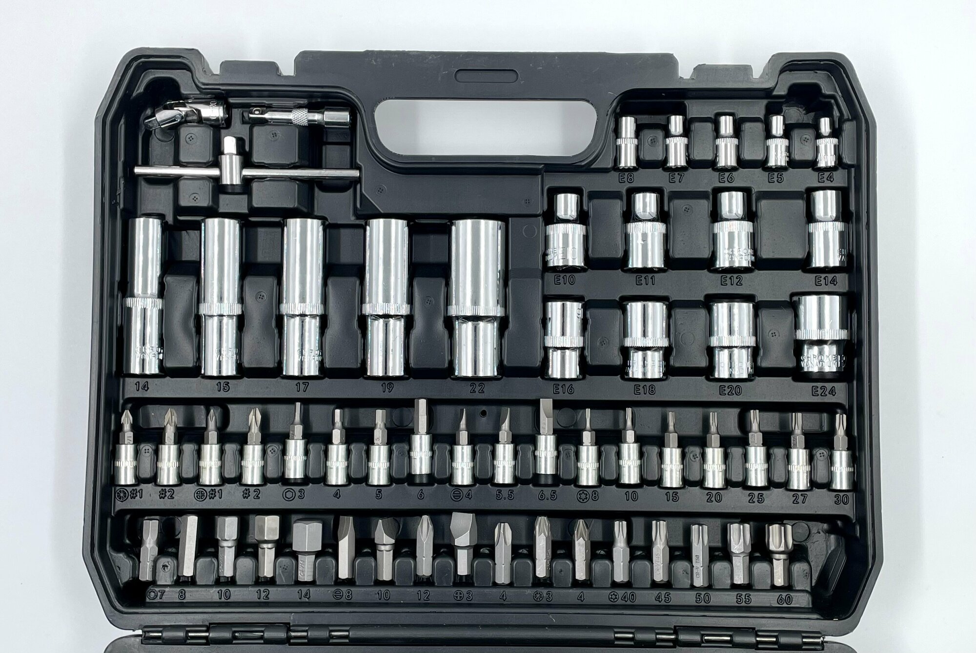 Набор поставляется в прочном полимерном кейсе с продуманным и оптимизированным пространством внутри. Четкость организации пространства облегчает поиск инструментов в процессе работы.