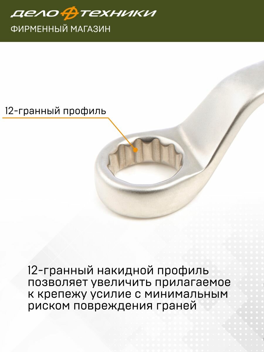 Набор накидных изогнутых ключей из хромованадиевой стали. Накидной профиль, в отличии от рожкового, позволяет увеличить прилагаемое к крепежу усилие, с минимальным риском повреждения граней. Смещение профиля в 45º от продольной оси делает работы в ограниченном пространстве более удобными. Никелирование с защитным лаковым слоем обеспечивает дополнительную антикоррозионную стойкость. Состав набора: — ключи накидные: 6×7; 8×9; 10×11; 12×13; 14×15; 16×17; 18×19; 20×22; 21×23; 24×27 мм; — тетроновый планшет. Сталь: 31CrV3 Твёрдость: 42 — 46 HRC Никелирование