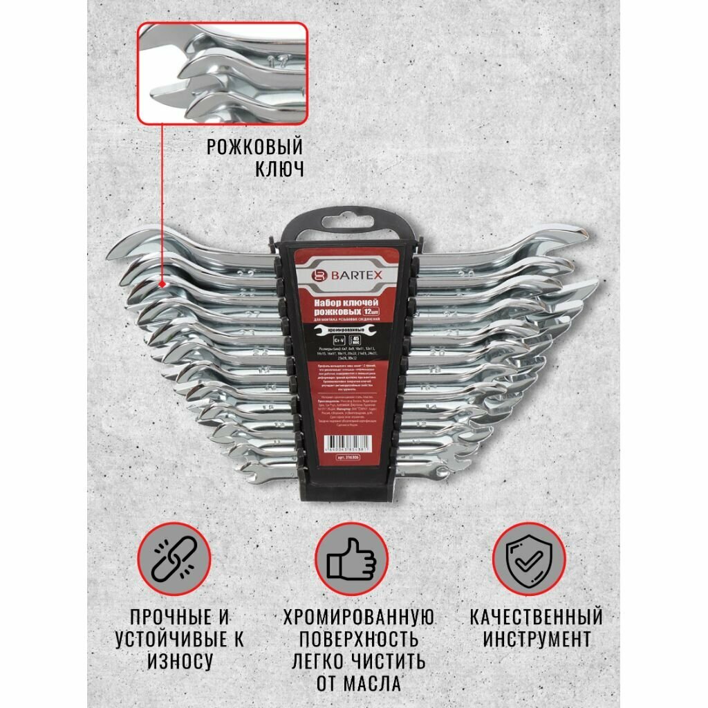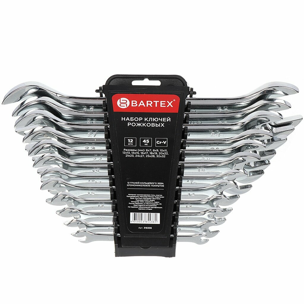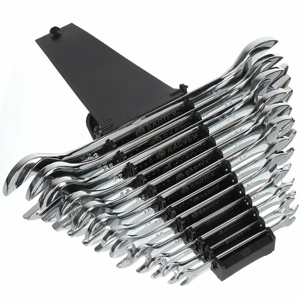 Купить Набор ключей рожковый, 12 предметов, Bartex, 6-32 мм, хромированный зеркальный, CrV сталь, держатель с доставкой по всей России.