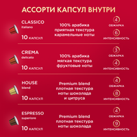 Купить Набор кофе в капсулах Coffesso, ассорти, 4 вкуса: Classico Italiano, Crema Delicato, Espresso Supreiore, House Blend, 40 шт с доставкой по всей России.