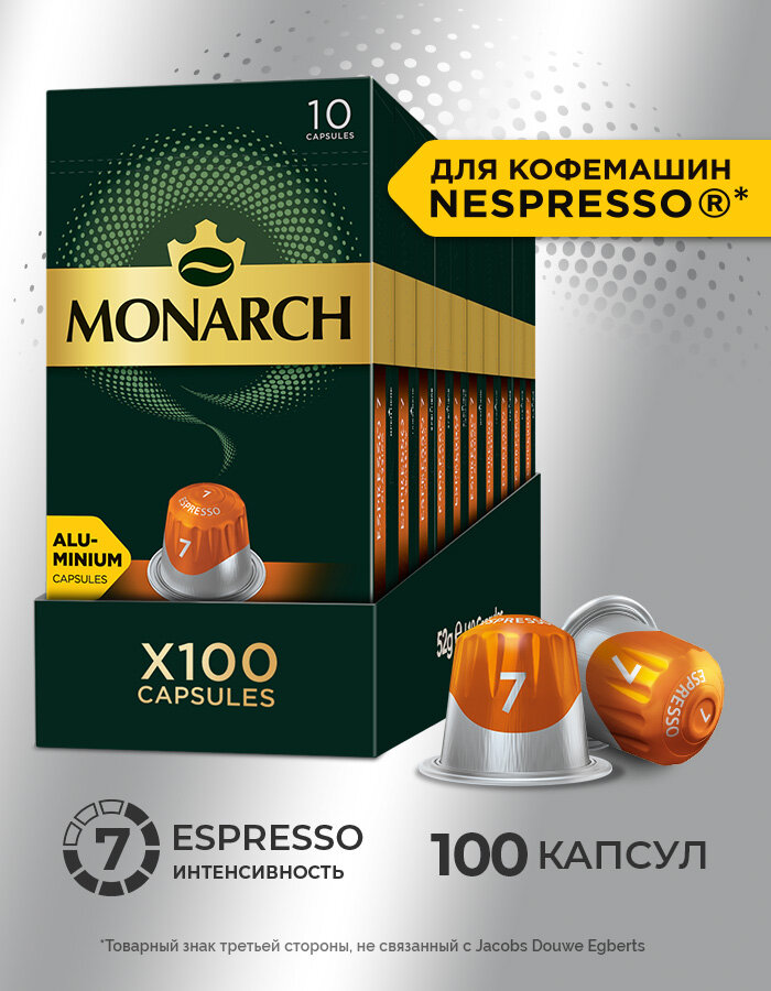 Купить Набор кофе в капсулах Monarch Espresso #7 Classico, 10 упаковок, 100 капсул с доставкой по всей России.
