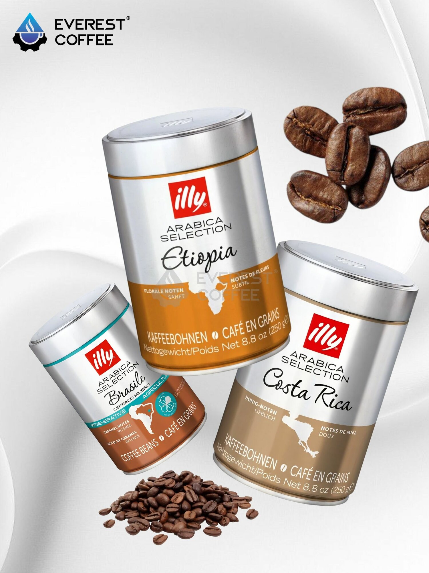 Дегустационный набор зернового кофе illy из трёх моносортов.