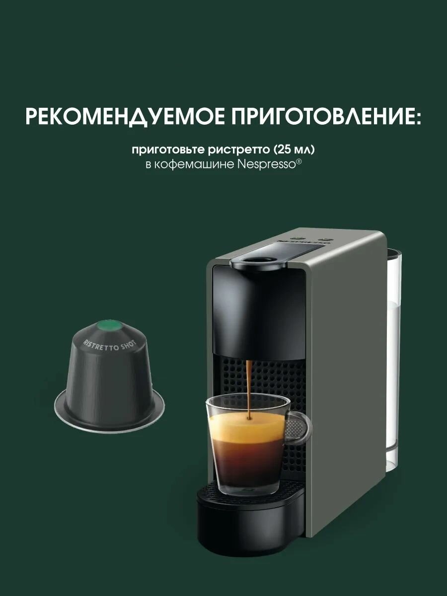 Набор оригинального кофе в капсулах Starbucks Ristretto Shot для кофемашин формата Nespresso Original (120 капсул). Starbucks Ristretto Shot - универсальный, смелый и плавный кофе. Ристретто — это эспрессо-шот, который экстрагируется с половинным количеством воды. Это приводит к концентрации кофейных масел и ароматов, что создает более интенсивный вкусовой профиль. Хотя может показаться, что это сделает кофе слишком крепким, на самом деле вкус становится более мягким, поскольку в нем содержится меньше соединений, вызывающих горечь. Если вы ищете насыщенный вкус эспрессо без горького послевкусия, вам определенно стоит попробовать Starbucks Ristretto Shot. Ристретто обладает мягким, концентрированным вкусом, который наверняка понравится даже самому взыскательному любителю кофе. Наслаждайтесь мягким вкусом карамели и красных фруктов, в этом кофе с молоком или без него. Рекомендуемые способы насладиться: Сам по себе он полон интенсивного вкуса (в объёме 25 мл). С молоком это уже более мягкий и кремовый кофе. Кофейная капсула - порция 100 % натурального жареного молотого кофе, упакованного в соответствующую ёмкость для заваривания в специальных капсульных кофеварках неспрессо ориджинал. Конусообразная капсула из алюминия, внутри покрыта пищевой защитной плёнкой, чтобы защитить кофе от взаимодействия с металлом. Данная технология позволяет сохранять аромат напитка больше года, что недоступно бумажным или вакуумным упаковкам. Линейка различных вкусов позволит приготовить все виды кофейных напитков у Вас дома. Капсулы рекомендуется хранить в контейнере или ящике вдали от источников тепла и прямого света. Мы очень рады, что Вы выбрали кофе Starbucks именно в нашем магазине, и с благодарностью ждём Ваши отзывы!