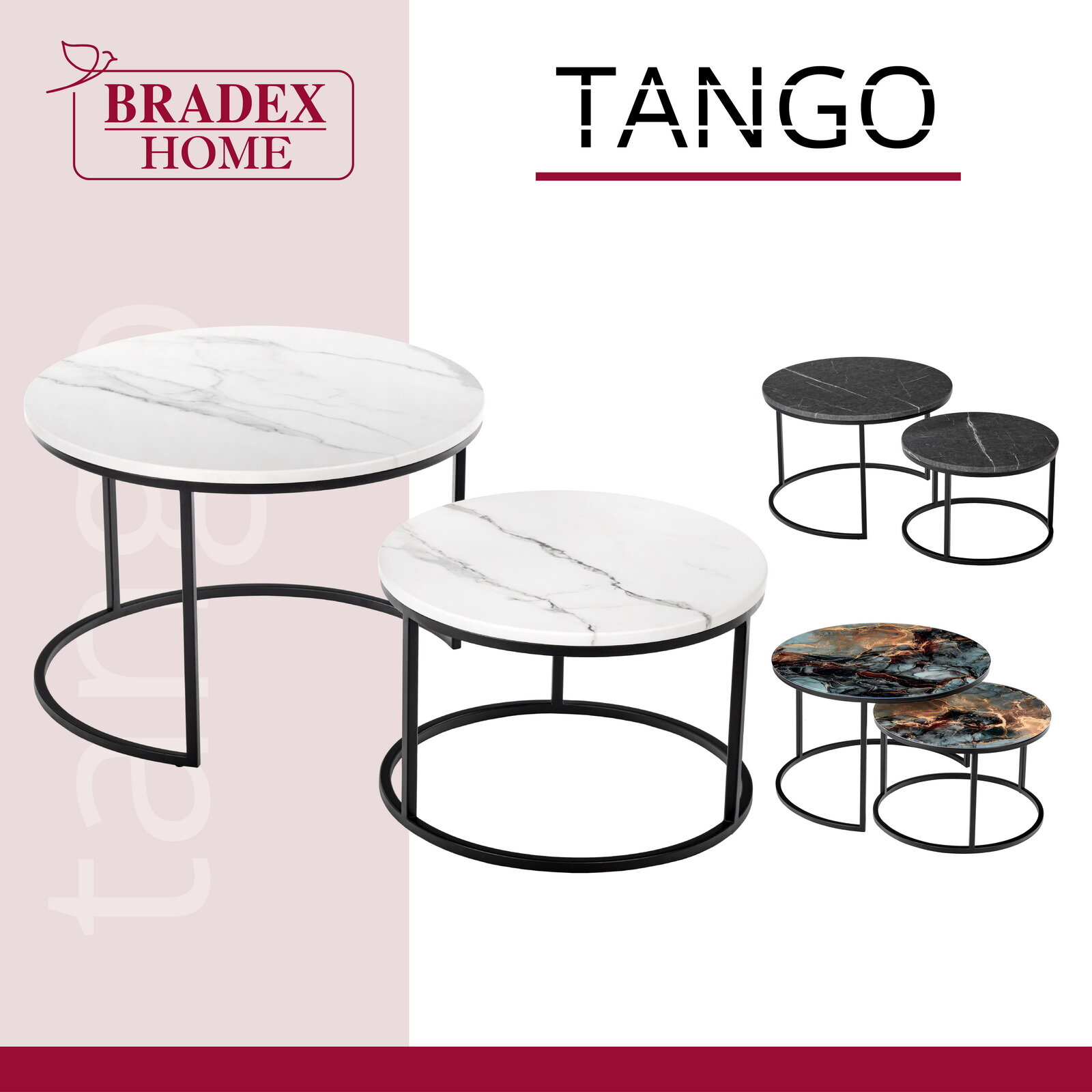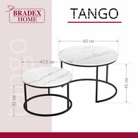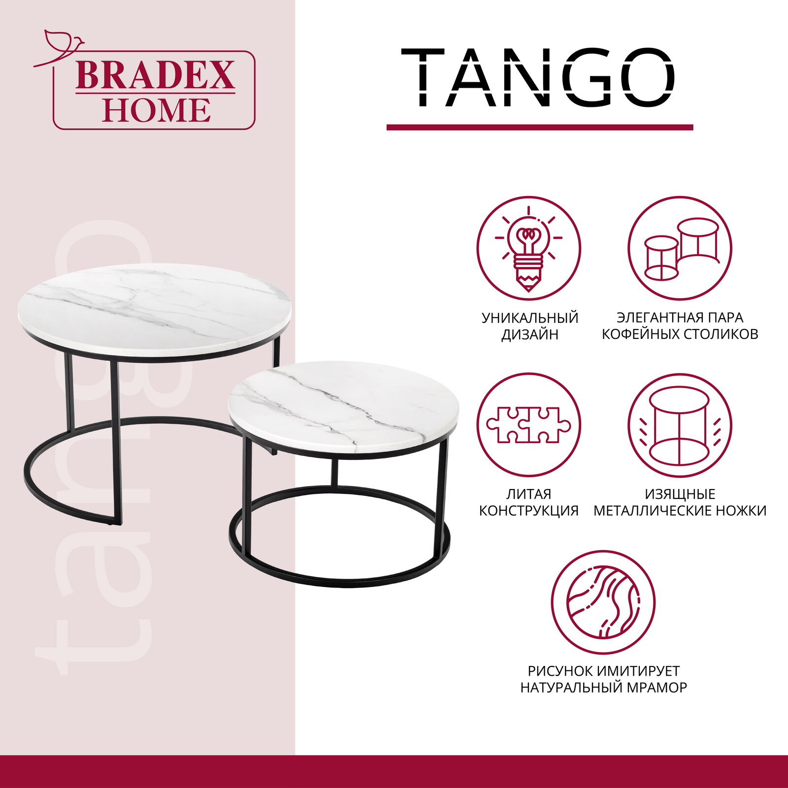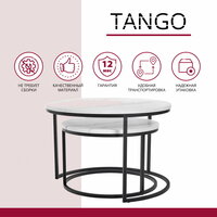Купить Комплект журнальных кофейных приставных столиков Tango 2 шт МДФ белый мрамор с черными ножками металл с доставкой по всей России.