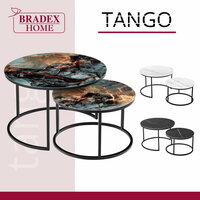 Купить Комплект журнальных кофейных приставных столиков Tango 2 шт закаленное стекло космический с черными ножками с доставкой по всей России.