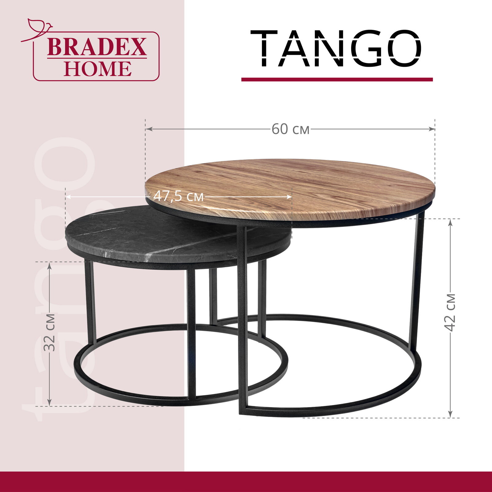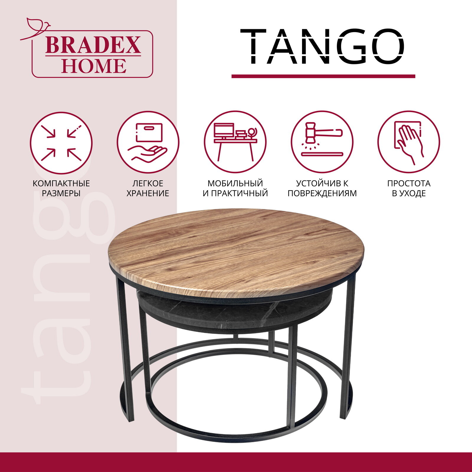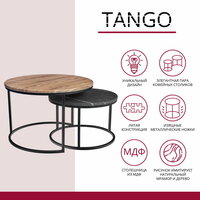 Комплект журнальных кофейных приставных круглых столиков в гостиную Tango 2 шт МДФ орех и серый мрамор с черными ножками: сравнение цен, характеристики, фото, актуальное наличие и цены.