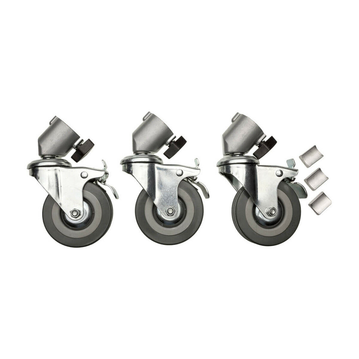 В комплекте 3 штуки. Позволит перемещать оборудование по студии не прилагая усилий. Поможет избежать опрокидывание стойки и оборудования.