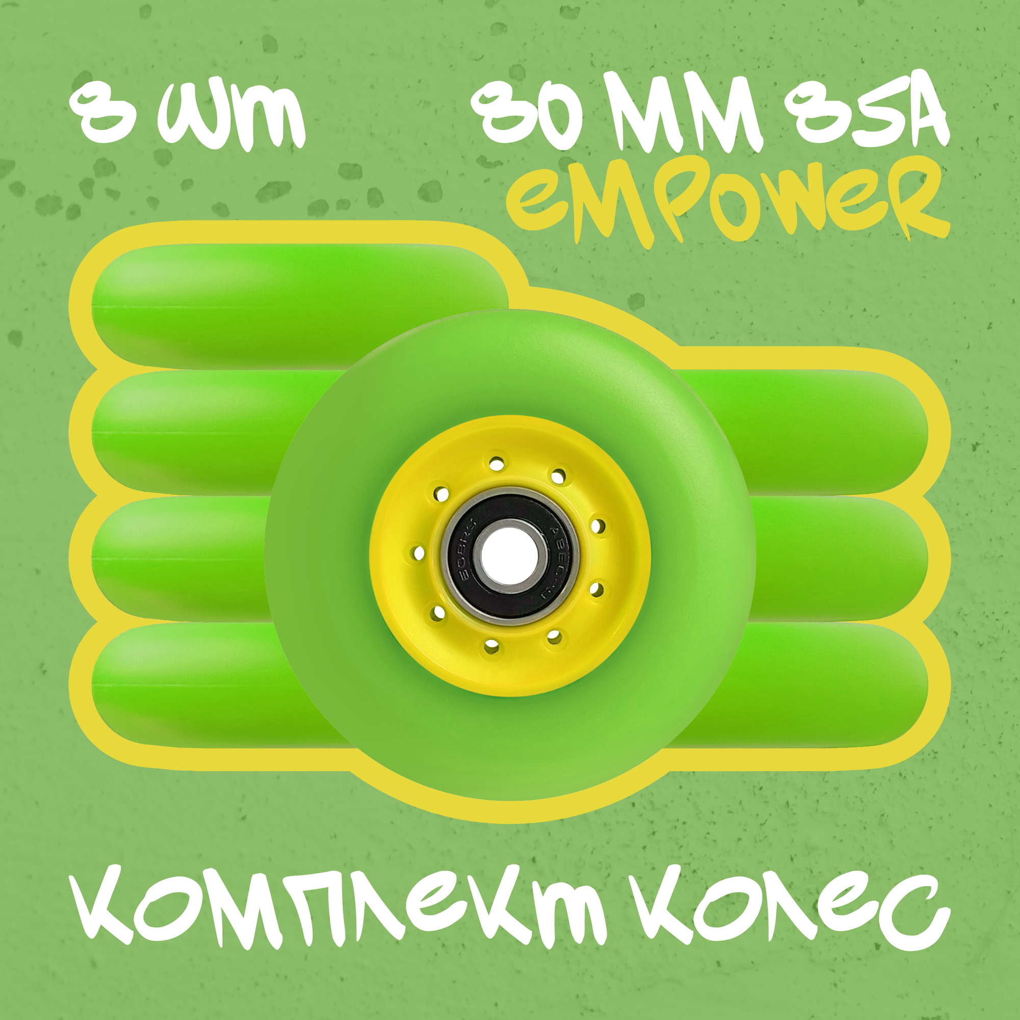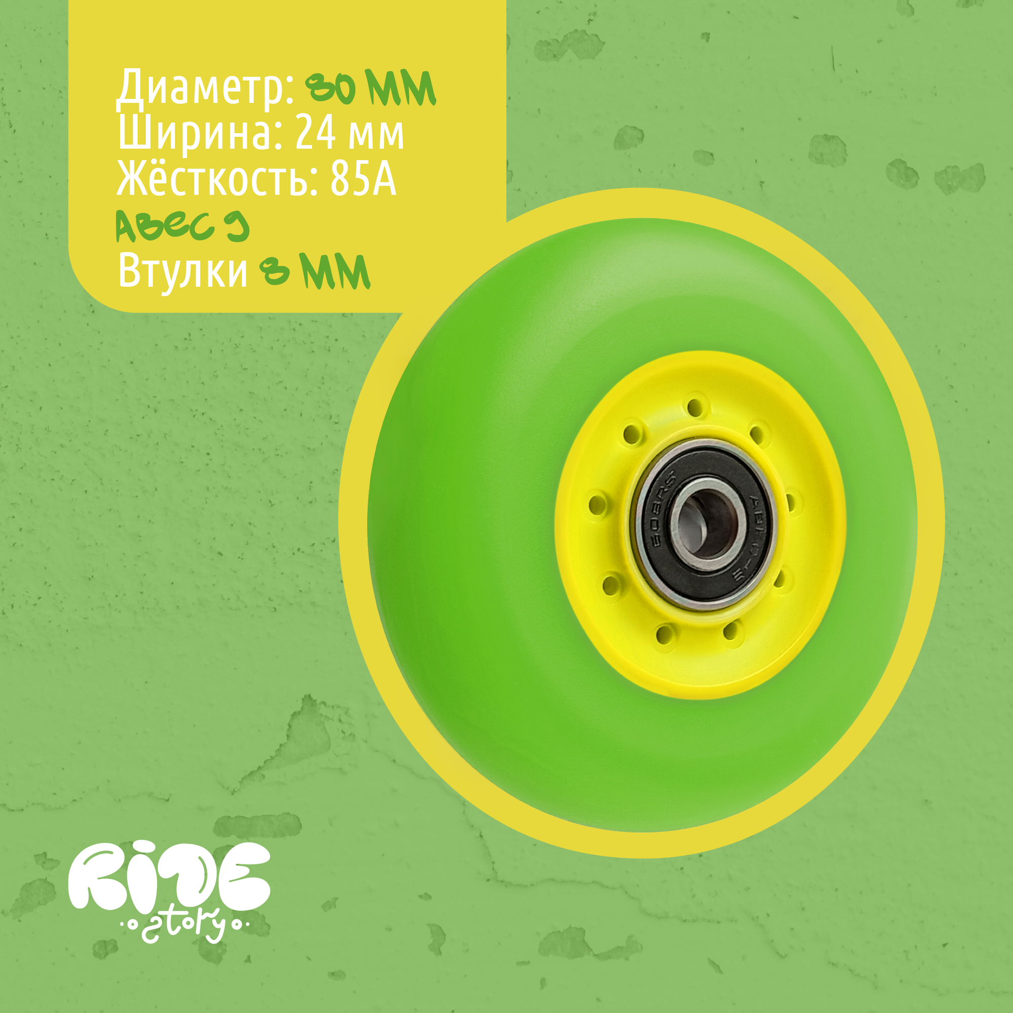 Набор колёс для роликов, 4шт: Ride Story Empower Wheels 80мм/85A (4pcs) + ABEC 9, Green/Yellow: сравнение цен, характеристики, фото, актуальное наличие и цены.