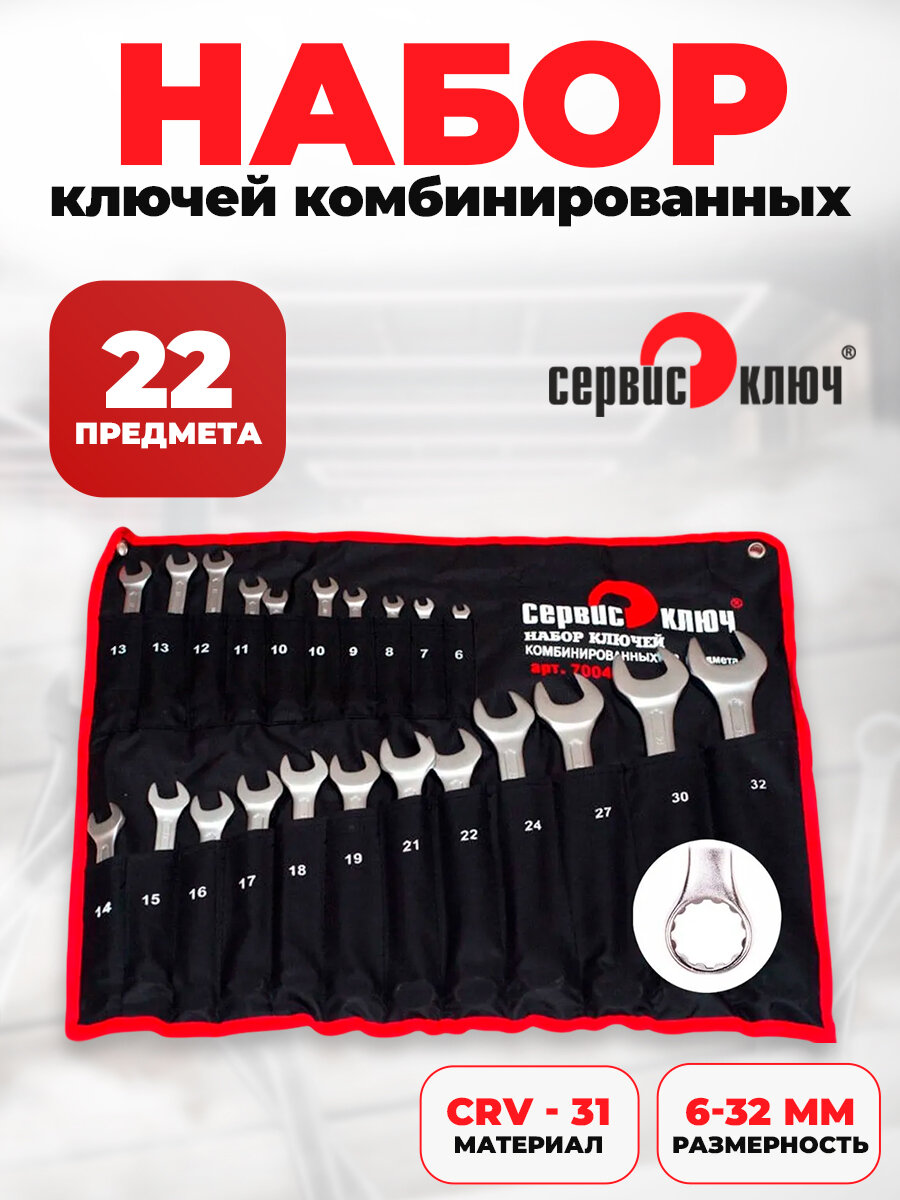 Купить Набор комбинированных ключей 6-32 мм 22 предмета в сумке, Сервис Ключ с доставкой по всей России. Набор комбинированных ключей 6-32 мм 22 предмета в сумке, Сервис Ключ: сравнение цен, характеристики, фото, актуальное наличие и цены.