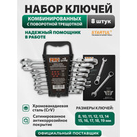 Купить Набор комбинированных ключей PRO STARTUL PRO-7308, с трещоткой и шарниром, 8 штук, 8-19 мм с доставкой по всей России.