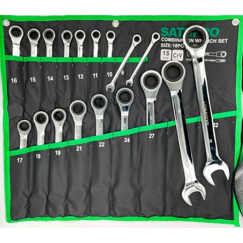 Набор комбинированных ключей с трещеткой 18пр 8-32мм с шарниром Satdpro / Автомобильных инструментов/ Ключи трещеточные