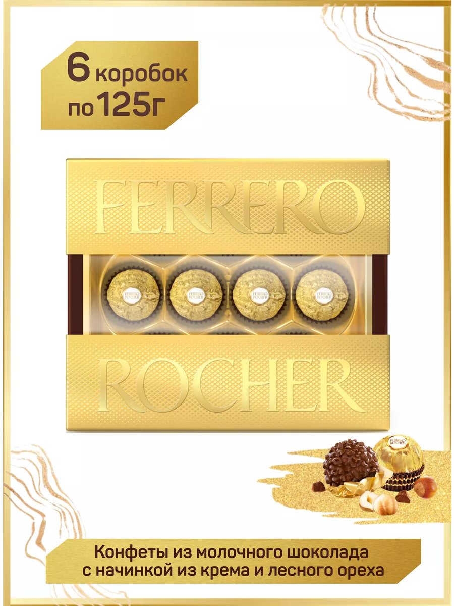 Купить Конфеты Ferrero Rocher, молочный шоколад и лесной орех, 6 шт по 125 г с доставкой по всей России. Конфеты Ferrero Rocher, молочный шоколад и лесной орех, 6 шт по 125 г: сравнение цен, характеристики, фото, актуальное наличие и цены.