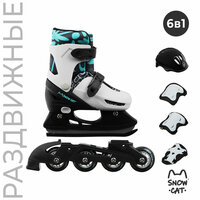 Набор: коньки детские раздвижные Snow Cat, с роликовой платформой, защита, р. 34-37