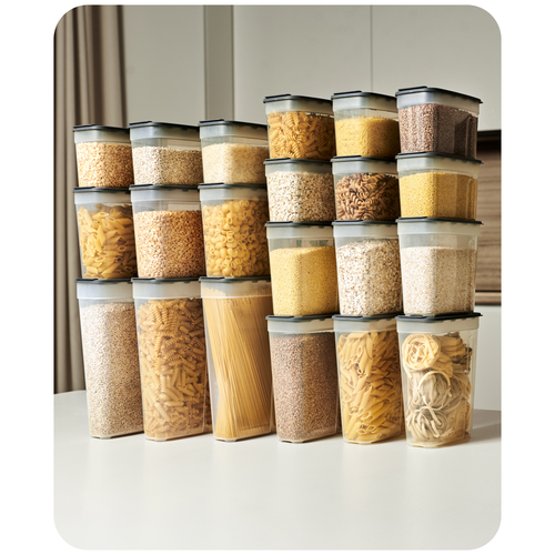 Контейнеры для спагетти производим из безопасного пищевого пластика, у них нет запаха. В банках для сыпучих продуктов можно хранить крупы, макароны, муку, сахар. Также в контейнеры для сыпучих продуктов можно насыпать сухофрукты, конфеты, орехи, чай, кофе, корм и лакомства для домашних животных.