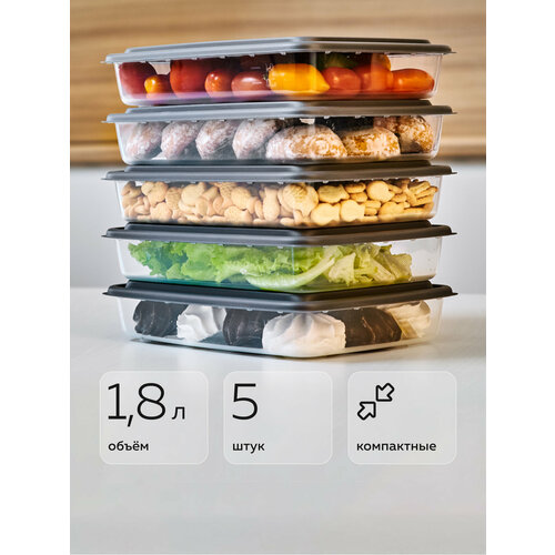 Набор контейнеров «Гурман», Альт-Пласт, графит, 1,8лх5 (5шт): сравнение цен, характеристики, фото, актуальное наличие и цены.