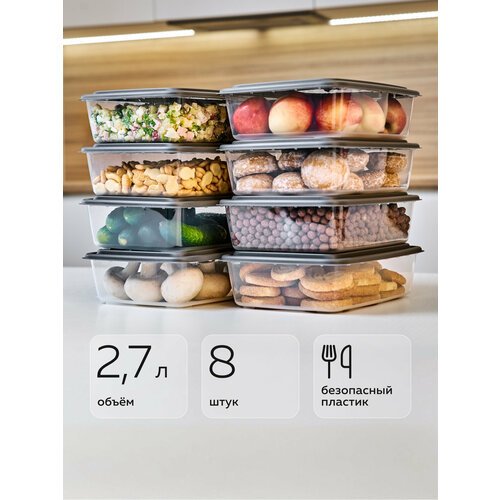 Купить Набор контейнеров «Гурман», Альт-Пласт, графит, 2,7лх8 (8шт) с доставкой по всей России.
