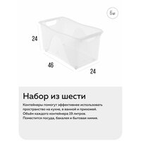 Внешние размеры органайзера под раковину 460×230×240 мм. У стенок минимальный уклон. Можете поставить несколько контейнеров рядом — так коробки для хранения образуют компактную систему, между ними будет минимум бесполезного пространства. Пустые контейнеры для хранения пластиковые вкладываются друг в друга и занимают мало места.