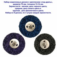 Набор коралловых дисков с креплением » под дрель» из 3 штук: мягкий, средний, жесткий. Диаметр 75 мм. Всего 9 дисков.: сравнение цен, характеристики, фото, актуальное наличие и цены.