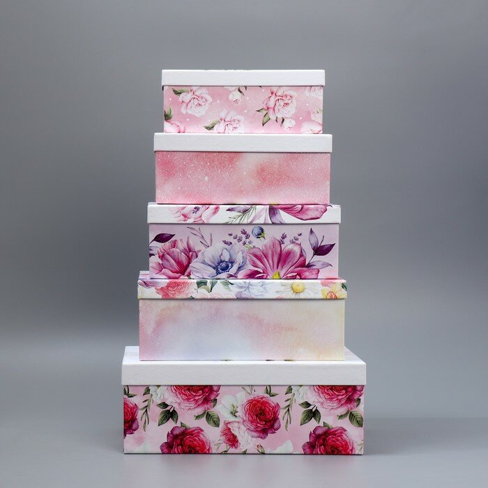 Купить Набор коробок 5 в 1, упаковка подарочная, «Цветы», 22×14×8.5‒ 32.5×20×12.5 см с доставкой по всей России.