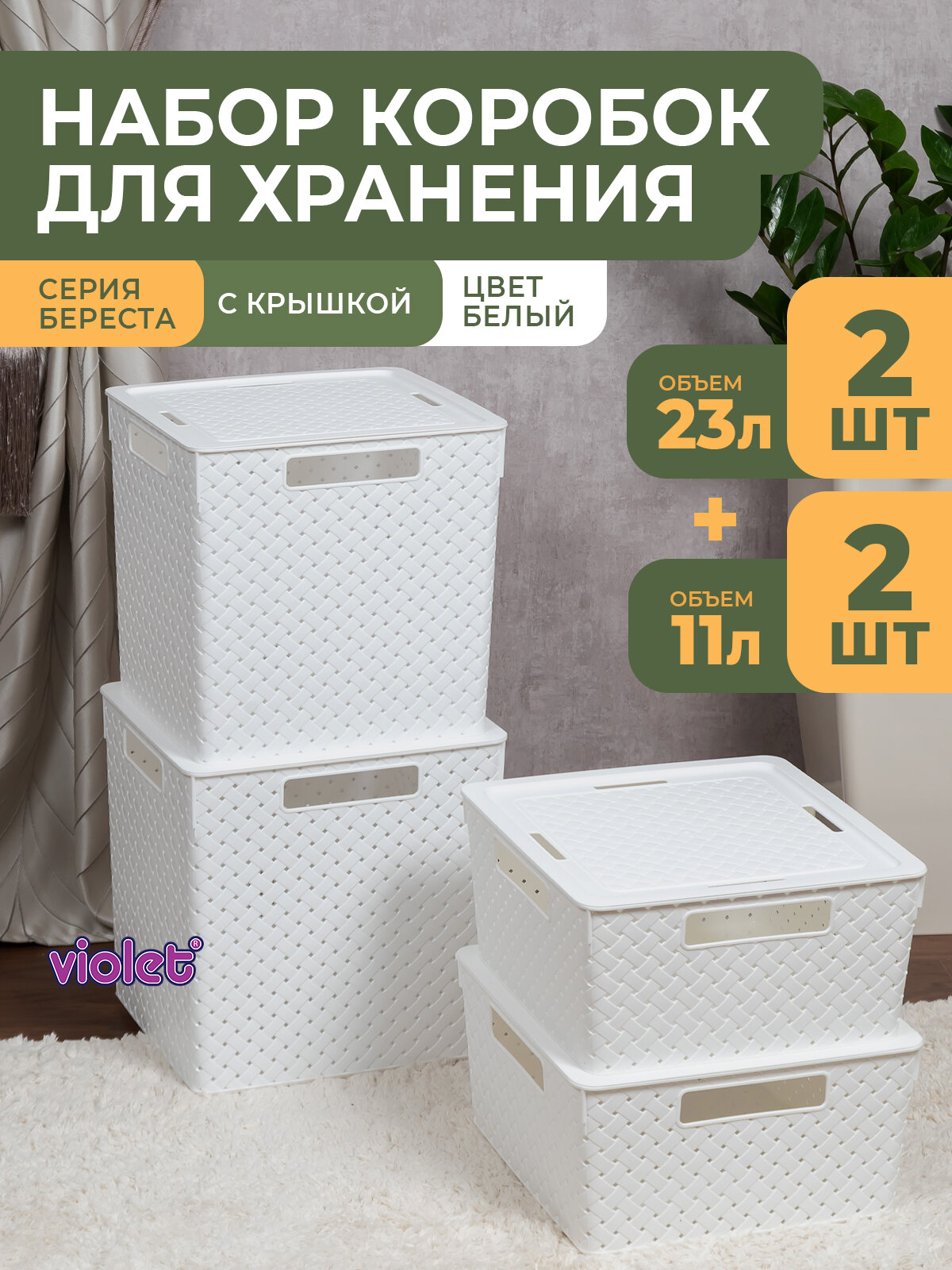 Купить Набор коробок для хранения Береста: контейнер 23л — 2шт, контейнер 11л — 2шт, цвет белый с доставкой по всей России.