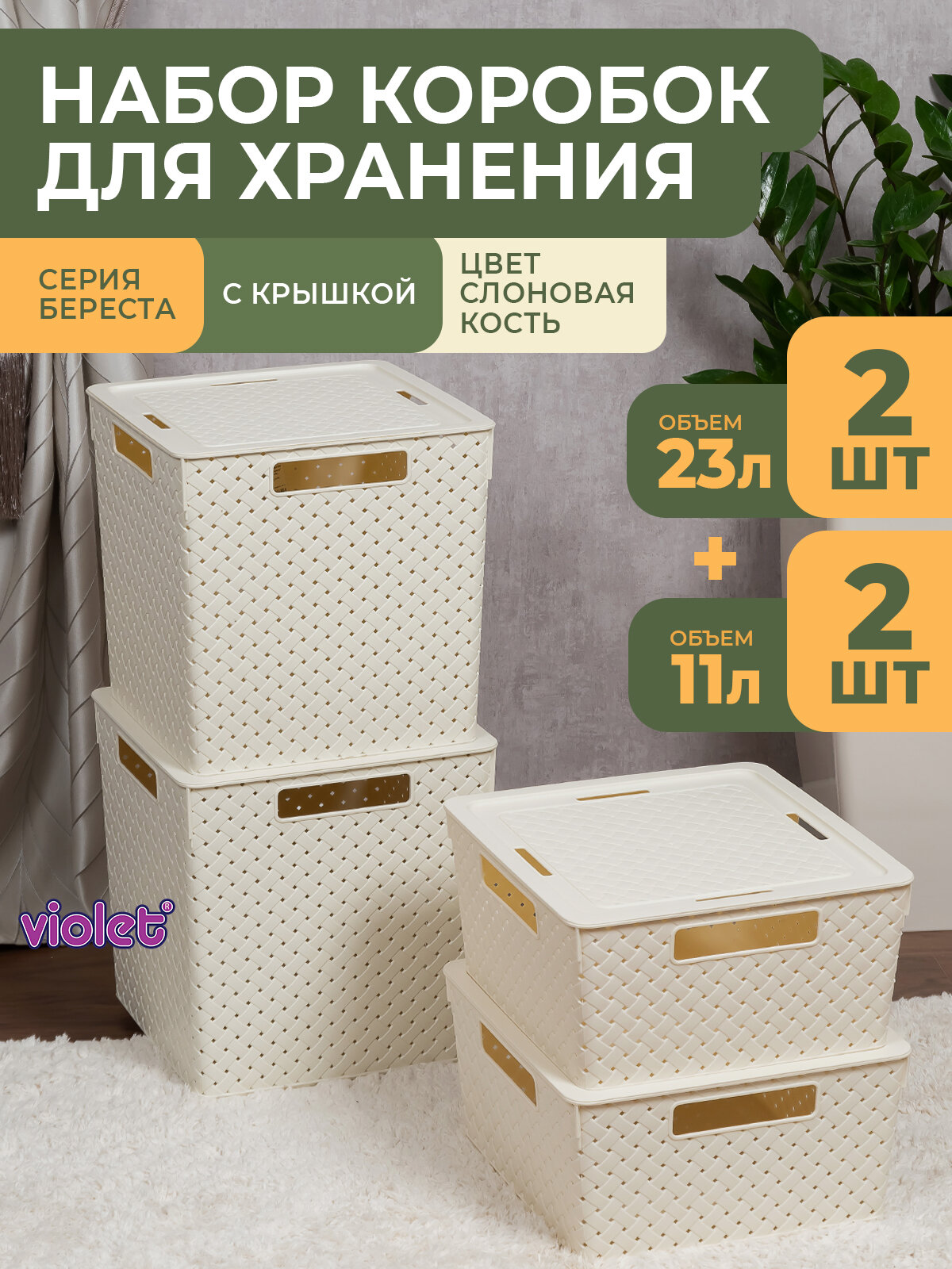 Купить Набор коробок для хранения Береста: контейнер 23л — 2шт, контейнер 11л — 2шт, цвет слоновая кость с доставкой по всей России.