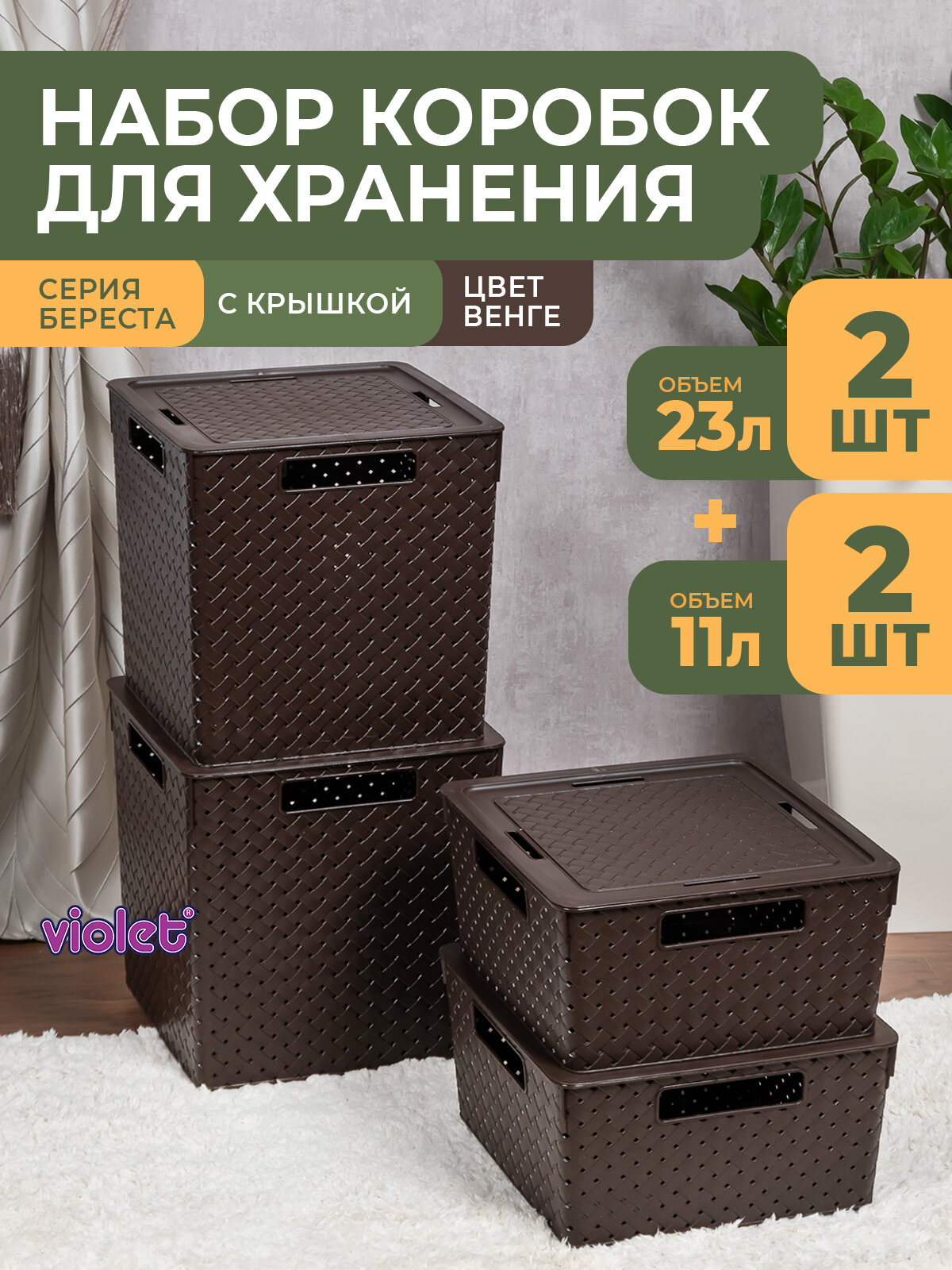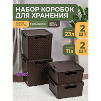 Купить Набор коробок для хранения Береста: контейнер 23л — 2шт, контейнер 11л — 2шт, цвет венге с доставкой по всей России.