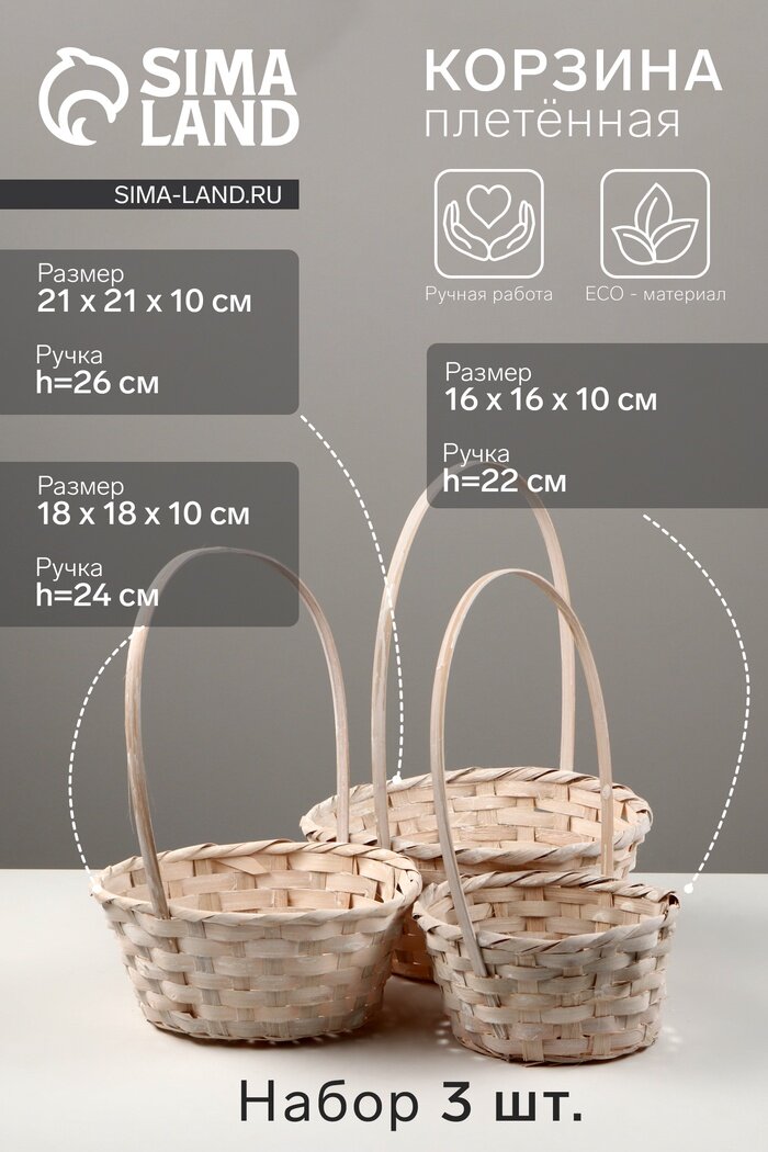 Набор корзин плетёных, 3 шт, 21×21×10 см, 18×18×10 см, 16×16×10 см, бамбук, белая: сравнение цен, характеристики, фото, актуальное наличие и цены.