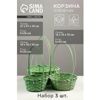 Купить Набор корзин плетёных, 3 шт, 21×21×10 см, 18×18×10 см, 16×16×10 см, бамбук, зелёный с доставкой по всей России.