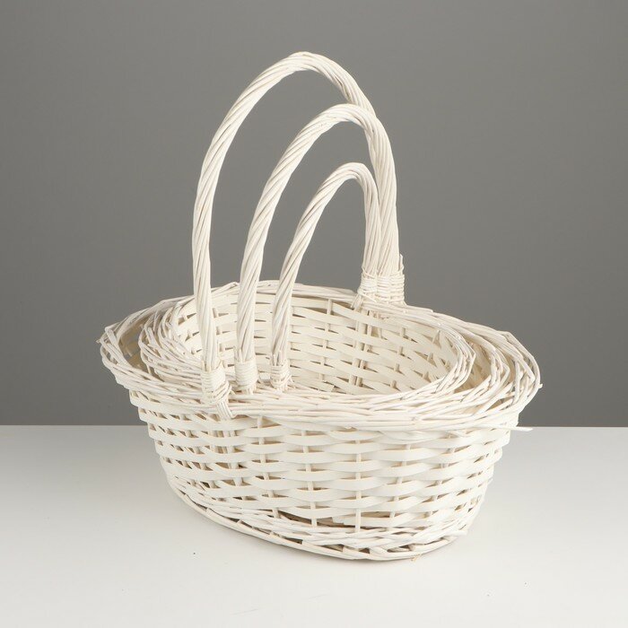 Набор корзин плетёных, 3 шт, 38×30×14 см, 33×25×12 см, 28×20×11 см, ива, белая: сравнение цен, характеристики, фото, актуальное наличие и цены.