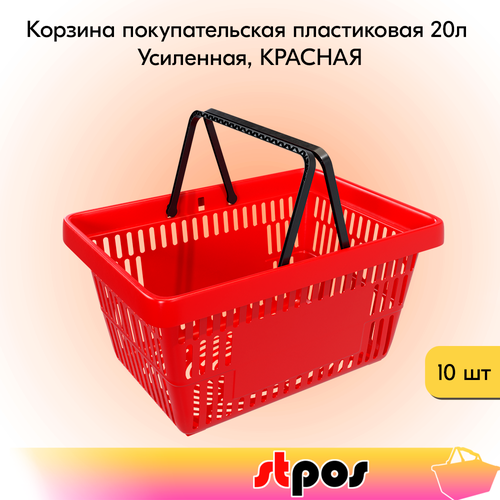 Купить Набор Корзин покупательских пластиковых с 2 ручками, 20 л, Усиленных, Красный 10 шт с доставкой по всей России.