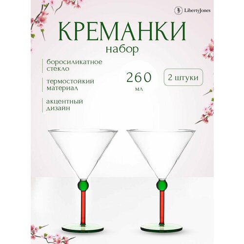 Набор креманок Orb станет настоящей находкой для тех, кто любит необычные предметы сервировки. Такая посуда идеально подходит для подачи игристых вин и десертов. Набор привлекает внимание интересным дизайном – изящные ножки креманок выполнены из разноцветного стекла. Особенности и преимущества:- Креманки выполнены из боросиликатного стекла, что обеспечивает им практичность и долговечное использование.- Материал отличается повышенной прочностью, не содержит в своем составе вредных соединений и легко моется.- Декор в виде разноцветных ножек делает дизайн уникальным и узнаваемым. Материал: боросиликатное стекло. Размеры: диаметр верхней части – 12 см; диаметр основания – 7,7 см; высота – 17,5 см. Объем: 260 мл. Цвет: зеленый, красный. Количество креманок в наборе: 2 шт.